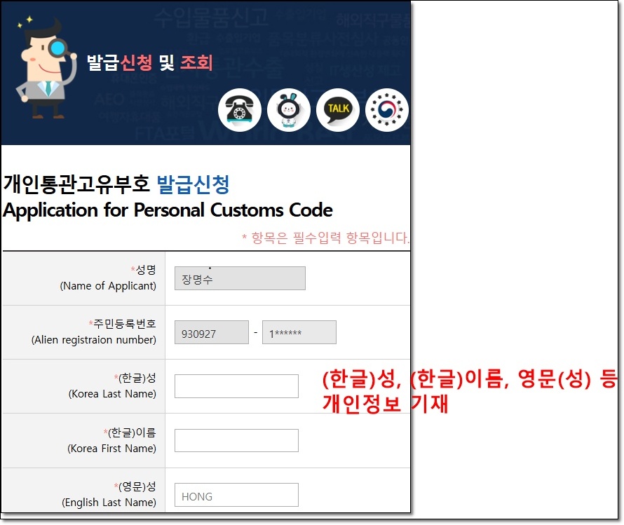 인증이 완료되면 신청서 화면이 나옵니다. 딱 3가지만 정확히 입력하면 됩니다.